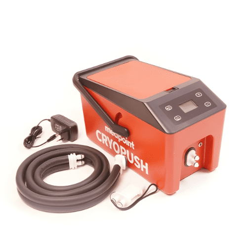 The CRYOPUSH device combines cold therapy and intermittent aerobic compression to reduce pain and swelling after injuries or surgeries. It helps to accelerate healing and improve blood circulation thanks to active cooling technology and intermittent compression, suitable for home use, sports and medical clinics.